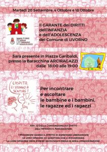 Livorno 9 settembre 2022 – Incontri in piazza Garibaldi per bambini ragazzi, con il Garante dell’Infanzia. Il calendario degli appuntamenti