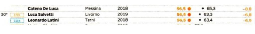 Il sindaco Luca Salvetti perde ben 25 posizioni in classifica scendendo al trentesimo posto