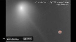 Se non puoi uscire o se il cielo nuvoloso impedisce la vista, puoi comunque vedere  l’avvicinamento della cometa C/2022 E3 (ZTF) al Pianeta Rosso