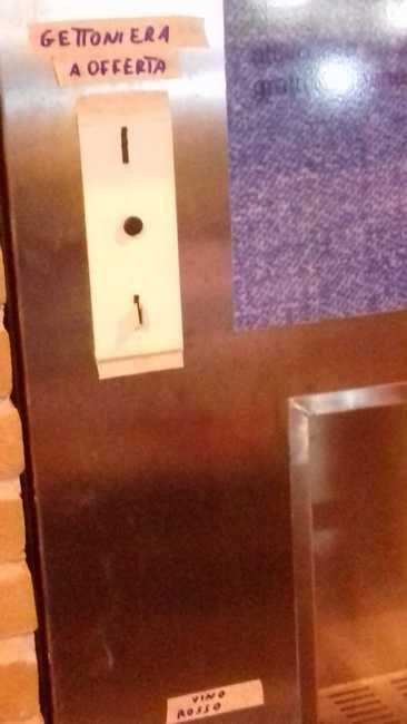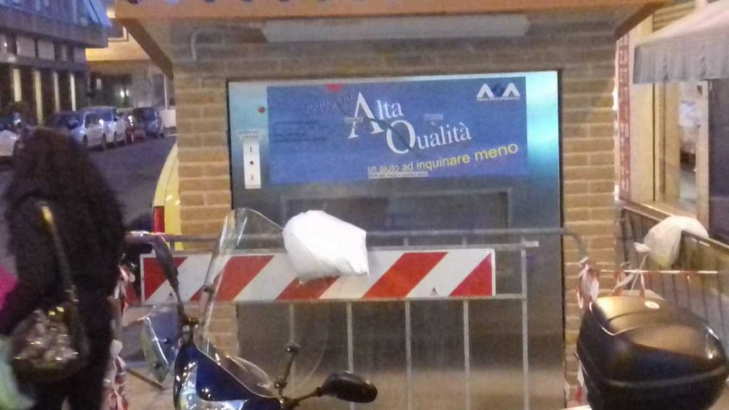 L’anonimo genio ha trasformato la fontanella in un finto distributore di vino. Accanto ai pulsanti di erogazione dell’acqua sono stati infatti apposti degli adesivi con scritto vino bianco e vino rosso. Sulla fontanella è stata incollata anche una finta gettoniera per inserire le monete prima della “erogazione” del vino.
