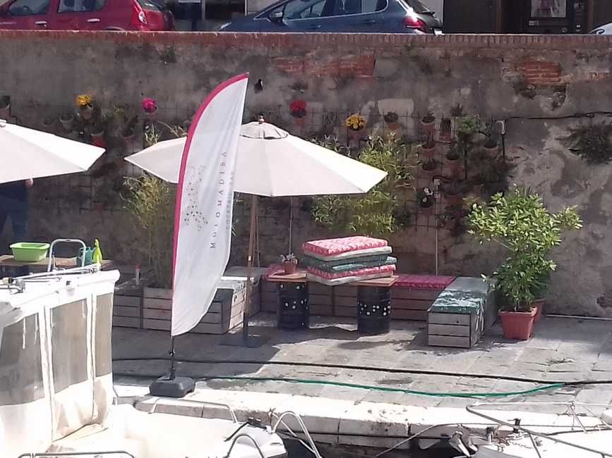 Sono pochissime le città al mondo che oltre ad avere canali navigabili hanno anche ampie banchine a livello dell’acqua. Tra queste Livorno e Utrecht. Nella città olandese larga parte delle banchine sono utilizzate dai ristoranti e locali, migliorando così la qualità della vita e valorizzando la storia. Per fortuna qualcosa del genere sta iniziando ad accadere a Livorno. In questa foto, negli scali del Pesce, un pub ha attrezzato parte della banchina rendendola fruibile ai clienti. Una buona idea.