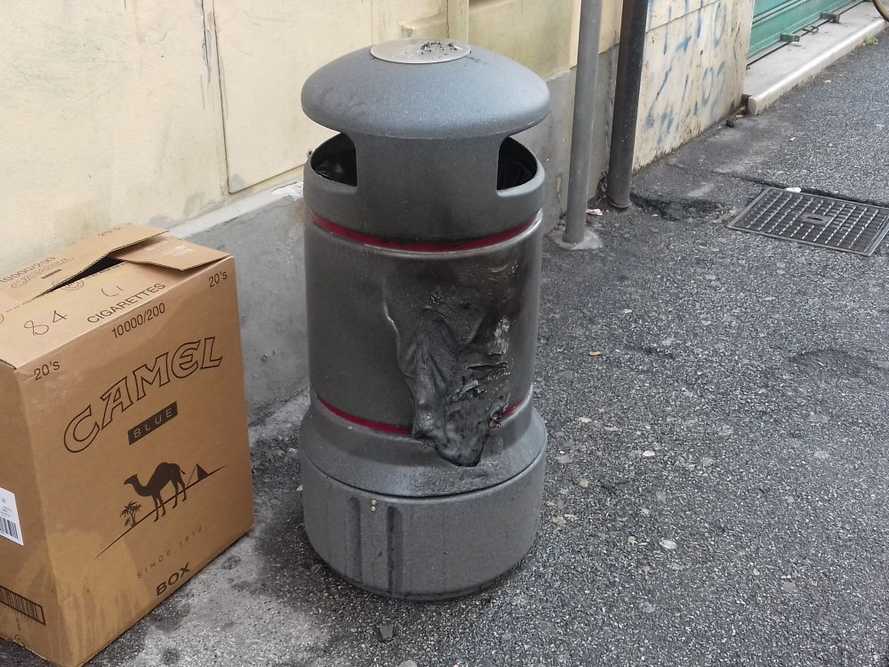 I nuovi cestini invadono la città per renderla più pulita e più vivibile. Lasciando perdere le recenti polemiche sul loro posizionamento del quale si è anche interessata Striscia la Notizia (che ha fatto misurare le distanze per il passaggio dei pedoni al sindaco Filippo Nogarin), possiamo notare che il nostro “sfortunato” cestino posizionato in via Marradi è durato proprio poco. Messo e già bruciato.