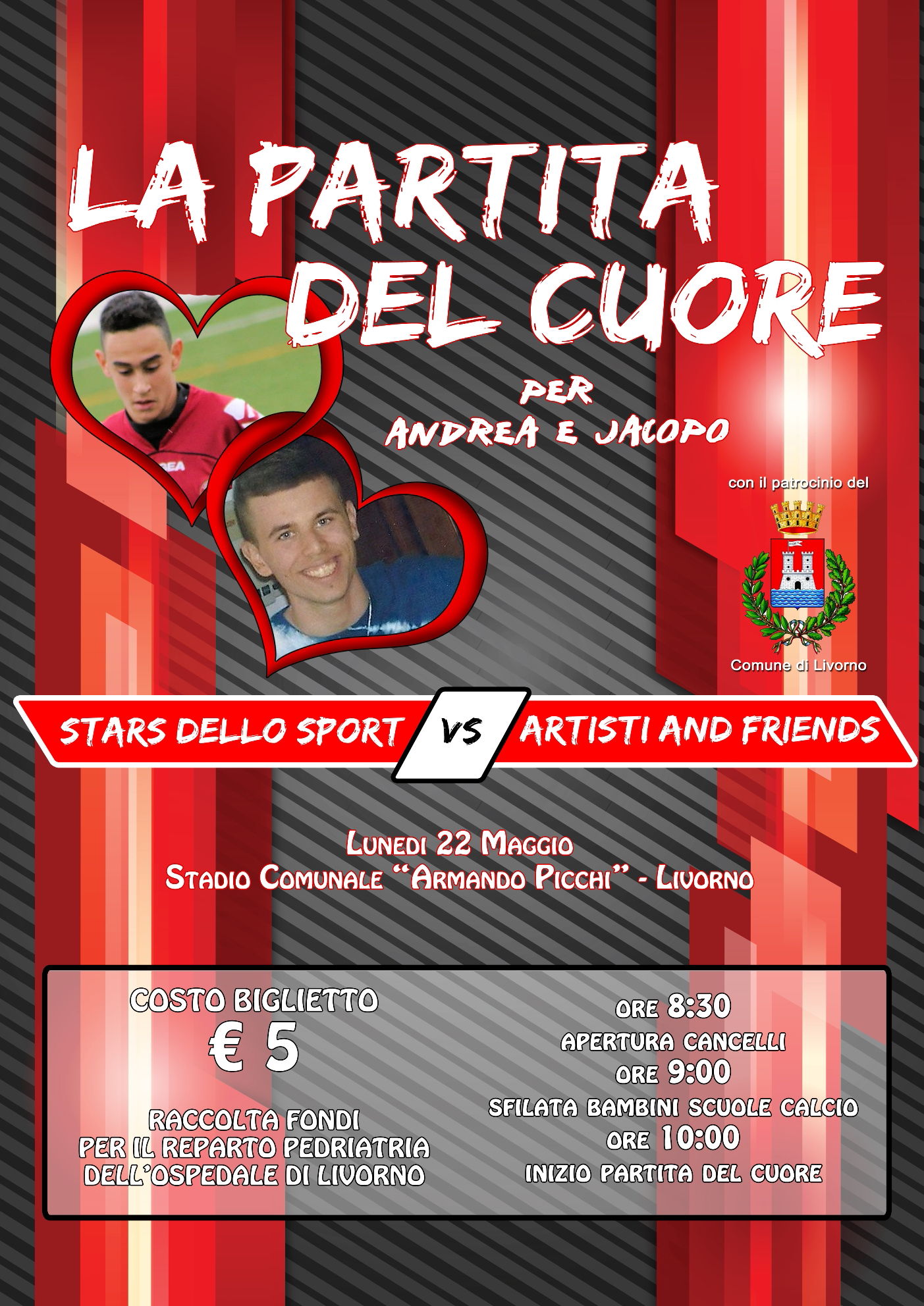 In ricordo di Andrea Faina e Jacopo Pieri, due giovanissimi ragazzi livornesi scomparsi quest’anno, lunedì 22 maggio allo Stadio Armando Picchi si disputerà “La Partita del Cuore”.