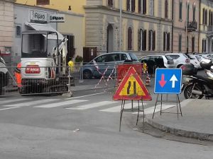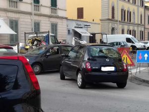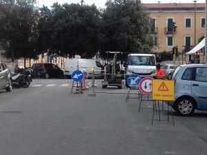Il cantiere in questione è sull’angolo di una strada a doppio senso di marcia: precisamente in via Tiberio Scali, angolo controviale Carducci.