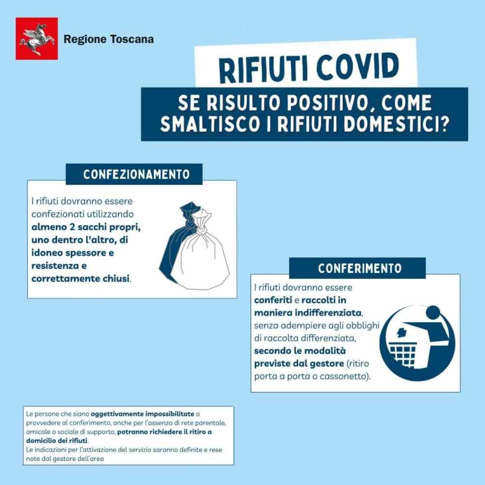 A seguito della nuova ordinanza del presidente della Regione Toscana Eugenio Giani che ritiene necessario, in merito alla gestione dei rifiuti provenienti da locali e luoghi adibiti ad uso dicivile abitazione e da strutture socio-sanitarie residenziali in cui dimorino persone risultate positive