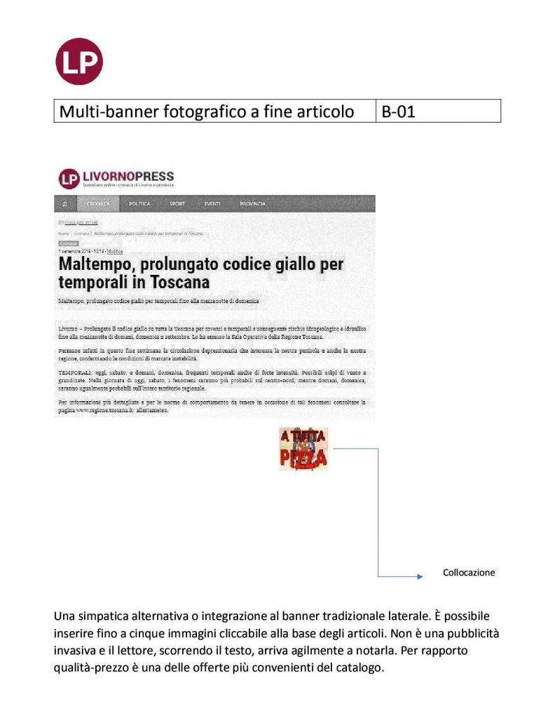 Qui di seguito un estratto del nostro catalogo pubblicitario con indicate le caratteristiche del minibanner (chiamato multibanner) e la sua collocazione rispetto all’articolo.