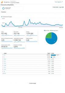 A questo indirizzo potete visualizzare gli analytics di Google, che certificano le visite al nostro sito negli ultimi 45 giorni. Gli articoli letti sono stati 2.588.744, pari a 57527 post il giorno. Gli utenti singoli sono stati 22.556 di media per ogni giorno.
