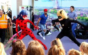 Sì, come vedete in foto sono proprio loro: Lady Bug e Chat Noir! E ci sono ancora tre sessioni di ballo disponibili per incontrarli sul palco di Porta a Mare e danzare insieme a loro.