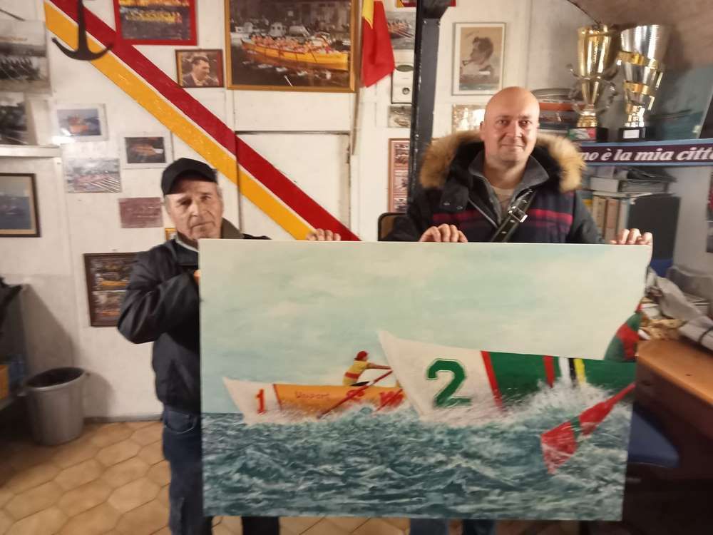 “La sezione nautica Pontino ringrazia l’amico Andrea della Capanna che ieri sera è venuto a trovarci donandoci questo bellissimo quadro da lui fatto.
