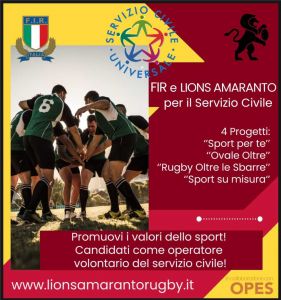Lavoro – Servizio civile presso la società rugbistica Lions Amaranto, come fare domanda