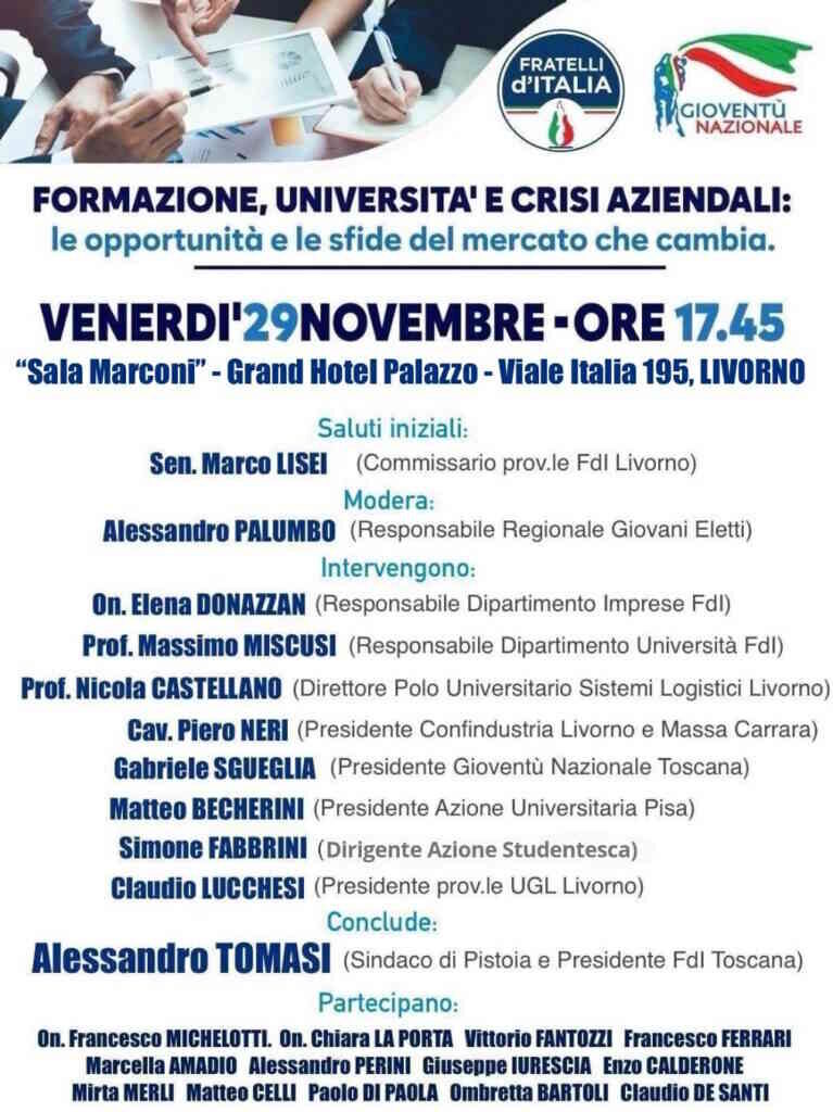 Livorno, 28 novembre 2024 – L’occasione sarà quella di parlare di Lavoro, Università e Formazione, ma l’appuntamento è anche molto politico.