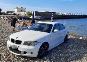 Lettini in riva al mare? No, posto occupato da una BMW alla spiaggia del Sale