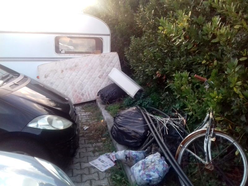 Quella che vediamo nelle prossime immagini è un’altra roulotte parcheggiata li da mesi, fino a pochi giorni fa tutto quello che si vede all’esterno era contenuto nel mezzo. “Oggi pulizie di gennaio”