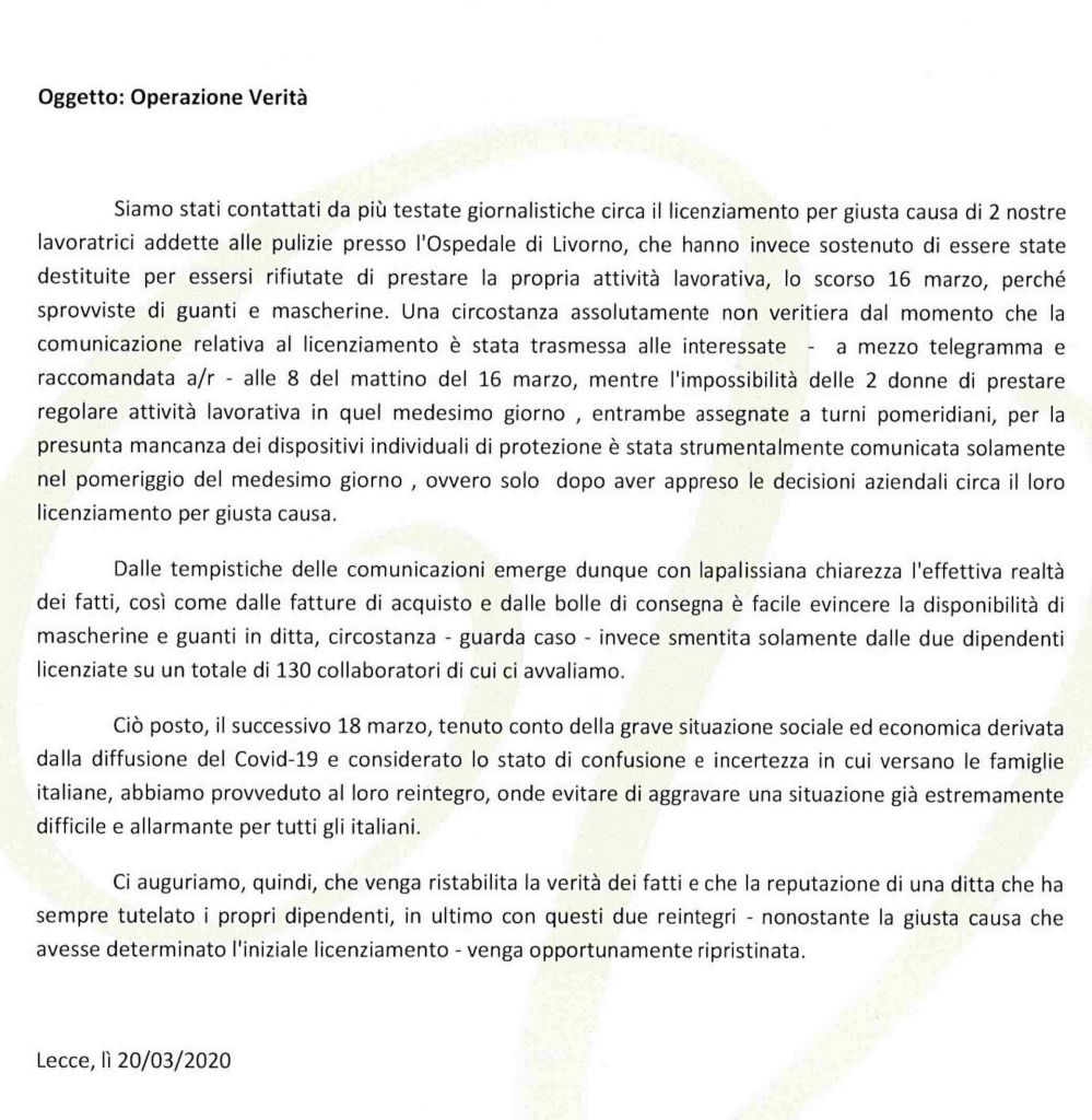 Home Cronaca Licenziamento cooperativa ospedale, la nota dell’azienda Cronaca 20 Marzo 2020 Licenziamento cooperativa ospedale, la nota dell’azienda Livorno 20 marzo 2020 – Riceviamo e pubblichiamo il comunicato della cooperativa in merito al licenziamento delle lavoratrici dell’ospedale di Livorno