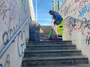 a seguito della segnalazione del cittadino, riportata quest’oggi (lun. 27/10/2025) anche da “LivornoPress“, dove in questi giorni qualcuno ha abbandonato un cumulo di rifiuti sulla scalinata; è stato effettuato un sopralluogo dedicato nel sottopasso ferroviario pedonale che collega Via Provinciale Pisana a Via Magri.