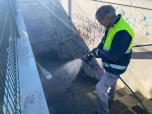 A seguire l’area è stata ripulita e igienizzata con l’ausilio del mezzo idropulitrice.