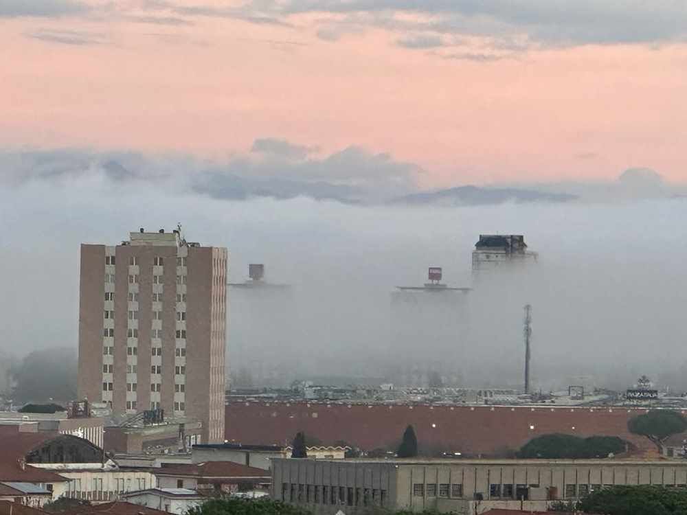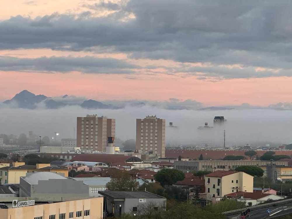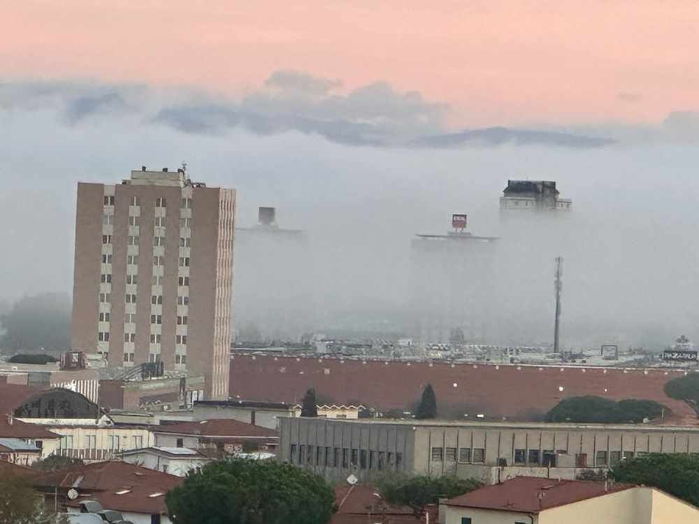 Ecco come parte della città si è svegliata questa mattina, la zona nord di Livorno (Porta a Terra) sembra dentro una nuvola.