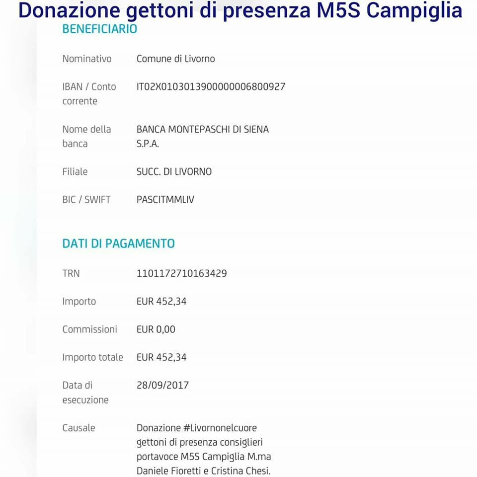 #LivornoNelCuore: il gettone M5S di Campiglia devoluto per Livorno