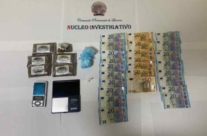 Il 37enne è stato subito sottoposto a perquisizione domiciliare. Presso la sua abitazione sono stati rinvenuti più di 500 grammi di hashish, suddivisi in panetti, circa 56 grammi di cocaina e 660 euro contanti, verosimilmente provento di spaccio, oltre a due bilancini di precisione d altro materiale atto al confezionamento. L’uomo è stato dichiarato in arresto perché colto nella flagranza del reato di spaccio e detenzione ai fini di spaccio di sostanze stupefacenti.