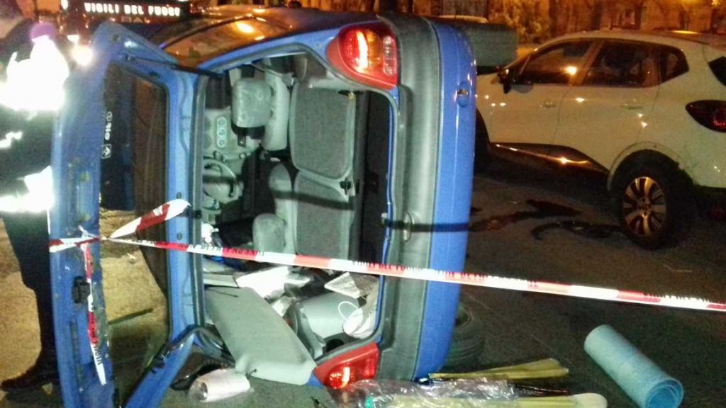 Incidente, auto ribaltata su un fianco in piazza Dante (Foto)