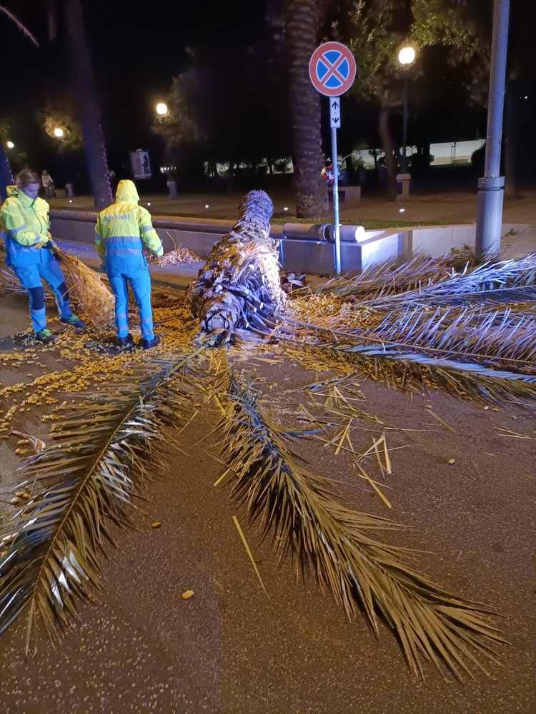 Maltempo allerta meteo per vento, le foto della palma caduta sul viale Italia