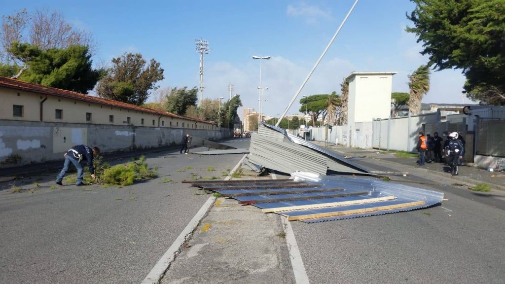 “Le raffiche di vento hanno provocato il crollo di queste lamiere, piombate nel primo pomeriggio in via dei Pensieri.