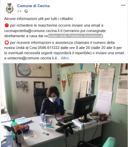 🛑 per richiedere le mascherine occorre inviare una email a cecinaprotetta@comune.cecina.li.it (verranno poi consegnate direttamente a casa dai volontari della Pubblica Assistenza)