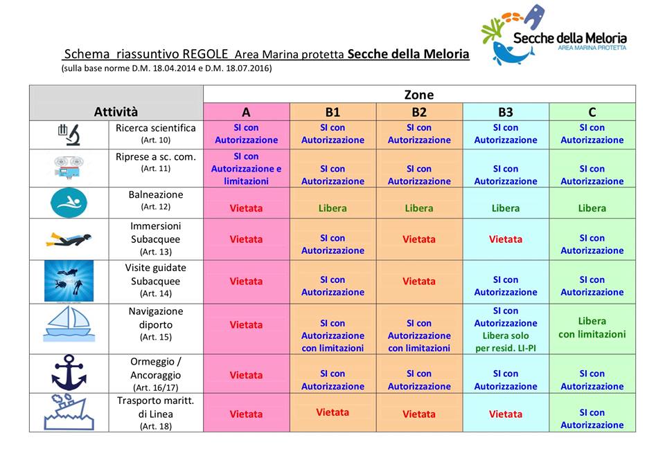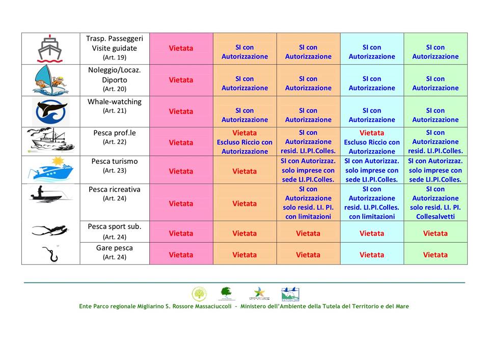 In vista della stagione estiva pubblichiamo lo specchietto semplificato e riassuntivo delle attività permesse all’interno dell’ AMP Secche della Meloria e delle modalità attraverso le quali sono regolate dal Parco Naturale Migliarino San Rossore Massaciuccoli