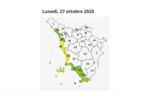 Un’area depressionaria con forti correnti di libeccio interesserà ancora la Toscana fino alla giornata di domani, lunedì 27 ottobre, prima di un temporaneo aumento della pressione tra martedì e mercoledì. I mari, domani, saranno ovunque molto mossi (sul litorale meridionale solo in serata), tendenti a divenire nuovamente agitati dal pomeriggio sul litorale livornese e al largo a nord dell’Elba.