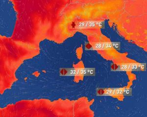 I valori più elevati verranno raggiunti al Nordovest, sulle tirreniche centro-settentrionali e in Sardegna, dove sono attese punte di 35/37°C sulle zone interne.
