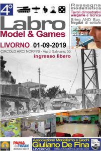 Livorno, 27 agosto 2019 – Lo storico Club Giuliano De Fina di Livorno ritorna con la QUARTA edizione del LABRO MODEL & GAMES, in una sede nuova più centrale, vicino alla Stazione e all’Ospedale (Circolo Arci Norfini, via di Salviano 53, Livorno)