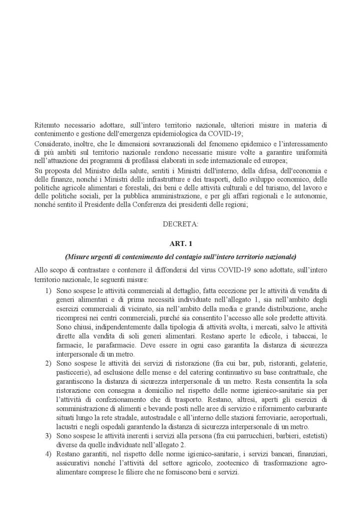 Ecco il testo del decreto Conte che chiude i negozi sino al 25 marzo.
