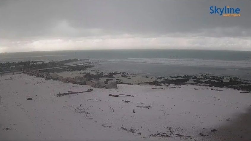 Di seguito la spiaggia innevata in uno screenshot di questa mattina della webcam sulla spiaggia di Rosignano Solvay preso da Skyline webcams