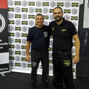 Nella foto il presidente Asd Krav Maga Leghorn Morelli con il maestro israeliano Alain Coen della Krav Maga Federation