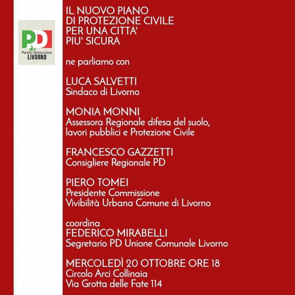 Il Partito Democratico promuove un’assemblea pubblica sul nuovo piano di protezione civile per il prossimo mercoledì 20 ottobre.