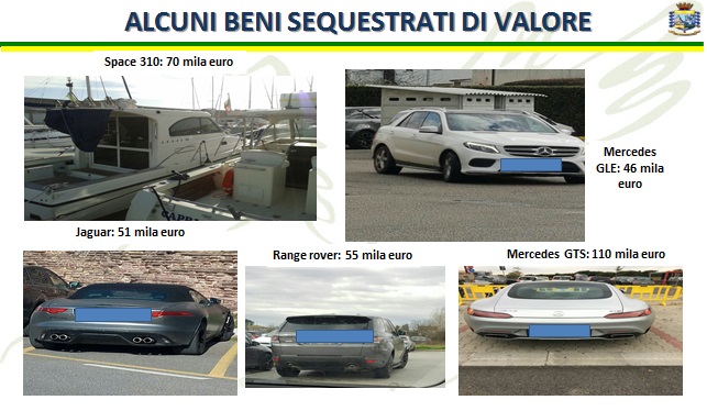 Barche, auto di lusso, gioielli, immobili e denaro, il bottino sequestrato dalla Guardia di Finanaza.