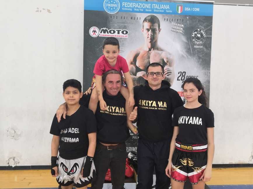 Livorno – Il dojo Akiyama presente era presente con :Edoardo Rolla nella specialità low kick light (sperimentale senza verdetto 6 anni), Angelina Catalucci specialità low kick light +42kg e Omar Meliani specialità low kick light +45kg al torneo riservato ai bambini categorie speranze, cadetti “30“, organizzato dalla Kai muay di Prato.