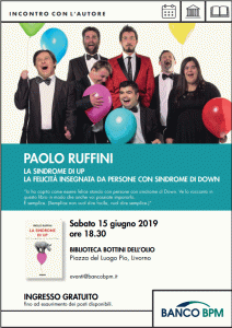 Livorno, 15 giugno 2019 – Nell’ambito della rassegna “Incontro con l’Autore” organizzata e promossa da Banco Bpm in tante città italiane, Paolo Ruffini presentera oggi sabato 15 giugno alle 18.30 il suo libro “La sindrome di Up. La felicità insegnata da persone con sindrome di Down”.