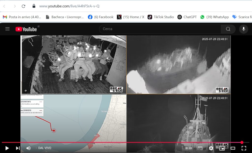 26 luglio 2025 Pirateria IDV: sequestrano in acque internazionali 21persone a bordo di Handala, tra loro anche l’italiano Antonio Mazzeo