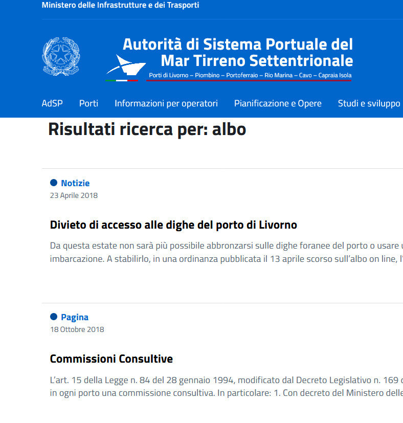 Si tratta di un errore classico dei database informatici, ma che evidentemente non è stato ancora affrontato e risolto. Questa sezione è, di fatto, la più interessante del sito perchè si possono trovare gli atti in originale e si possono scaricare per leggerli. In nessun altro punto della pagina istituzionale dell’ente che amministra il nostro porto e le strutture demaniali pubbliche si trovano atti e provvedimenti.