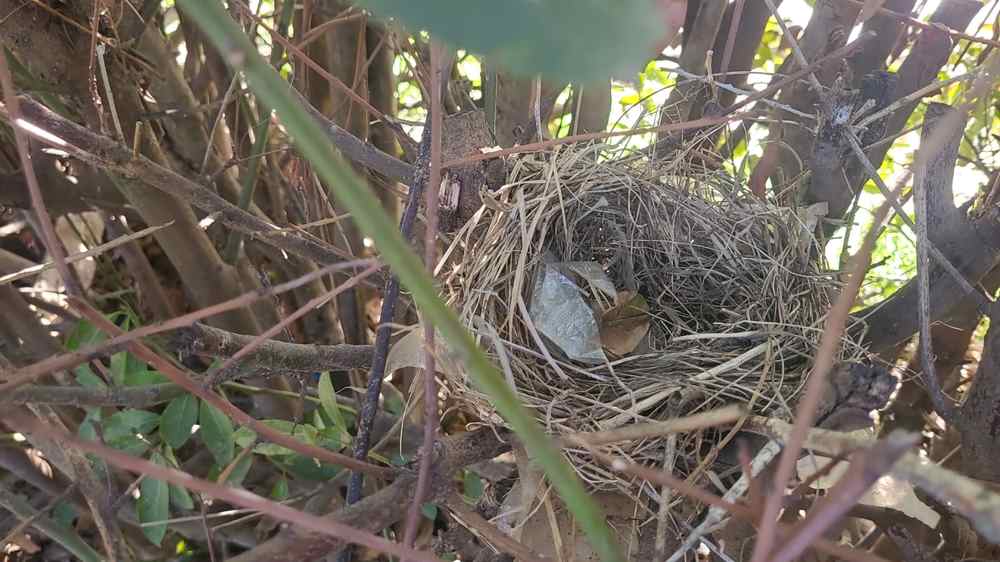 Ciò che ha scoperto lo ha profondamente colpito:;il nido non era costruito solo con i tradizionali rametti e fili d’erba intrecciati, ma conteneva una quantità significativa di plastica. Pezzi di sacchetti di plastica erano stati utilizzati dal povero merlo per costruire la sua dimora.