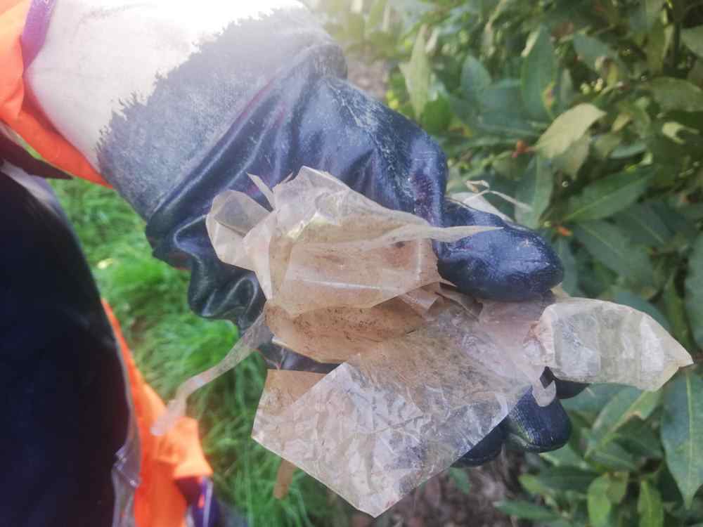 Con grande cura e attenzione a non danneggiare il nido, Mister Green ha iniziato a rimuovere la plastica. Nella foto che accompagna questa storia, si può vedere l’impressionante accumulo di rifiuti plastici che si erano nella struttura nel nido.