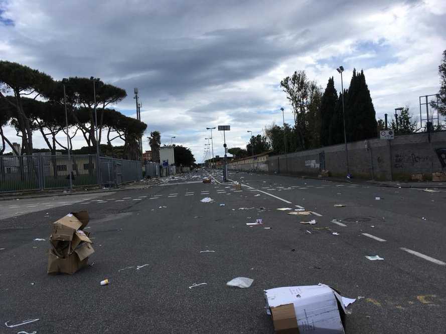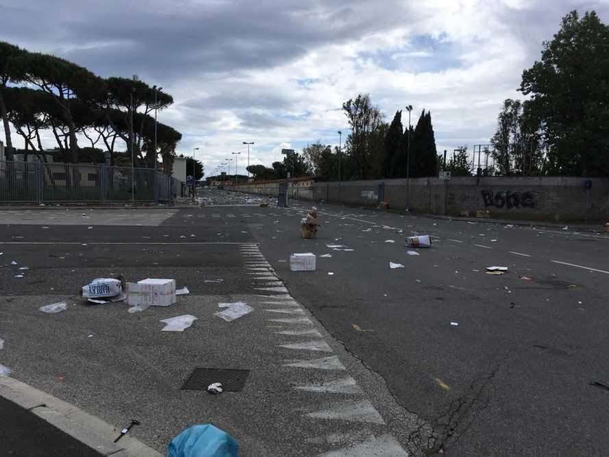 Come si vede dalle immagini allegate, ci sono chili di spazzatura (carta, cartoni e plastica) sparsi per terra e che con il vento vengono trasportati nelle abitazioni private e giardini limitrofi.