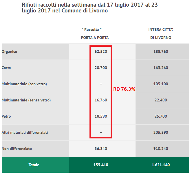 “Ottime notizie! La raccolta porta-a-porta funziona: secondo i dati Aamps, nell’ultima settimana di luglio la raccolta differenziata nei quartieri serviti dal porta-a-porta (ormai oltre 32mila abitanti, pari al 20% della città) ha toccato il 76,3% effettivo, contro il 40,4% del resto del territorio, ancora bloccato dal vecchio sistema dei cassonetti.