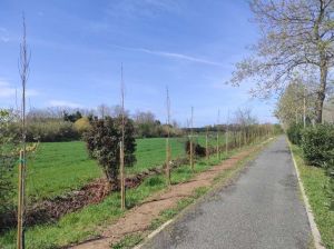 Nello specifico, sul lato sud della strada, quello posto a valle, è stata ultimata la piantumazione di un filare di pioppi cipressini. Una volta che gli alberi saranno cresciuti, renderà più ombreggiato il percorso ciclo-pedonale durante i mesi estivi.