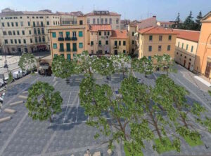 Dal punto di vista ambientale, l’intervento sarà anche caratterizzato dalla messa a dimora di oltre 20 alberature ombreggianti, in continuità con quelle presenti sul viale Carducci. La presenza degli alberi porterà ad una riduzione delle temperature soprattutto nei periodi estivi, oltre a recare ai cittadini importanti vantaggi dal punto di vista del benessere sensoriale e percettivo. Sarà inoltre incentivato l’uso della piazza come luogo di sosta, aggregazione e relazione, con l’inserimento di sedute sia nella parte centrale che lateralmente, posizionate a ridosso delle alberature per meglio delimitare la parte pedonale e sfruttare l’ombreggiamento. Oltre alle sedute saranno installate rastrelliere per biciclette e un totem informativo sui temi dell’adattamento climatico.
