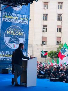 Romiti si congeda dai trentamila della piazza e dopo di lui salgono sul palco candidati, dirigenti e anche gente comune fino a Giorgia Meloni per il comizio finale. “Con il voto del 26 maggio vogliamo cambiare le città e l’Europa; si vota in molti comuni ed io voglio fare un grande in bocca al lupo a tutti i candidati di FdI molti dei quali sono in piazza, altri sono qua dietro e altri ancora hanno preso la parola. Auguro loro di poter garantire alle loro città un futuro degno e ricordo che il nostro partito ha un primato: fin qui i nostri sindaci sono sempre stati riconfermati al secondo mandato. Significa che siamo capaci di governare e che possiamo essere fieri di noi”.