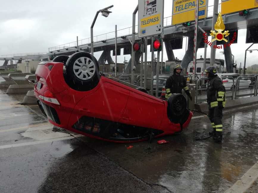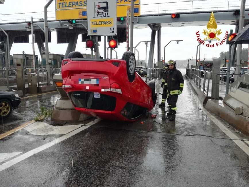 Livorno 22 settembre 2019 – Al casello di Rosignano M.mo – corsia nord – per una vettura condotta da una donna ha capottato in corrispondenza dell’ingresso al casello.