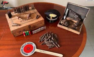 Nell’ambito del controllo però, all’interno di un garage di proprietà dell’uomo, i carabinieri, oltre a numerosi oggetti da collezionismo unicamente di valore storico e simulacri della 1^ e 2^ Guerra Mondiale, hanno rinvenuto; un revolver Rast & Gasser cal.8 privo di munizioni, oltre 140 cartucce di vario calibro nonché 2 spolette di artiglieria.