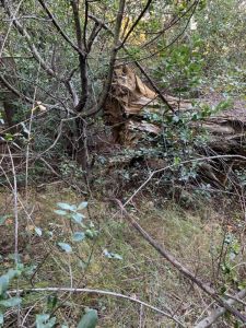 la presenza di un grande quantitativo di vegetazione secca non rimossa unitamente all’evidente presenza di bivacchi con accensione di fuochi moltiplica le possibilità di incendio.